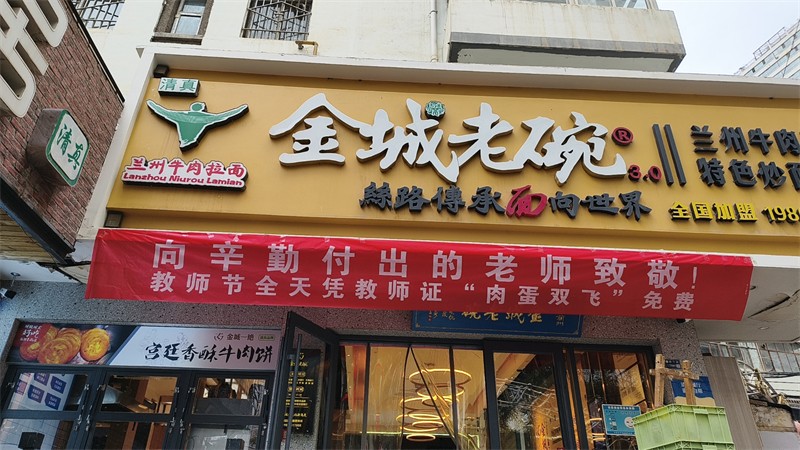 “人民教師、無(wú)上光榮、教書(shū)育人、無(wú)私奉獻(xiàn)”,在我國(guó)第40個(gè)教師節(jié)來(lái)臨之際,為了感恩老師誨人不倦、教書(shū)育人的奉獻(xiàn)精神,金城老碗牛肉面蘭州直營(yíng)店——大眾巷總店、五里鋪華邦店、靜寧路店聯(lián)合省外部分加盟店同時(shí)啟動(dòng)“向辛勤付出的老師致敬”的感恩老師活動(dòng):“教師節(jié)全天憑教師資格證‘肉蛋雙飛’免費(fèi)”。