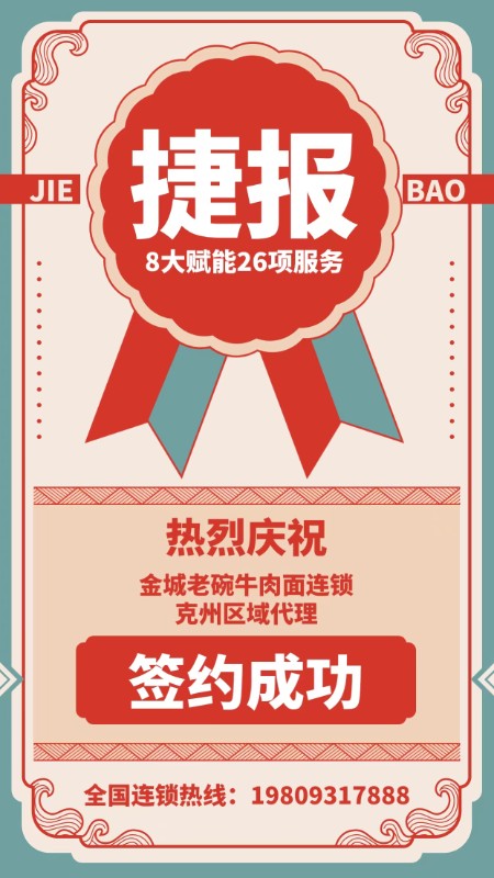 非常高興聽(tīng)到金城老碗牛肉面連鎖成功簽約了克州區(qū)域的代理商!這是一個(gè)重要的里程碑,標(biāo)志著金城老碗牛肉面連鎖在該地區(qū)的市場(chǎng)拓展取得了巨大進(jìn)展。